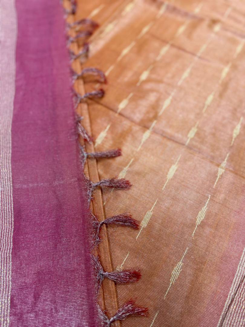 Elegant and lightweight tissue saree, perfect for special occasions. Features a subtle sheen and delicate texture. Available in a variety of colors. Add a touch of sophistication to your wardrobe with this timeless piece.